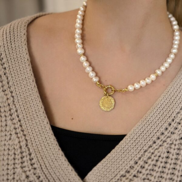 Naszyjnik nieregularne perły z monetą