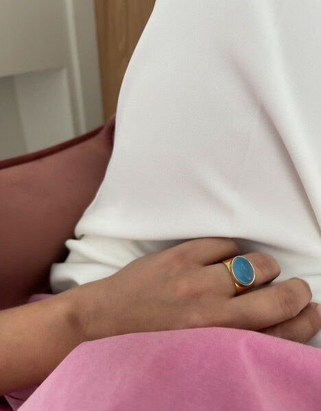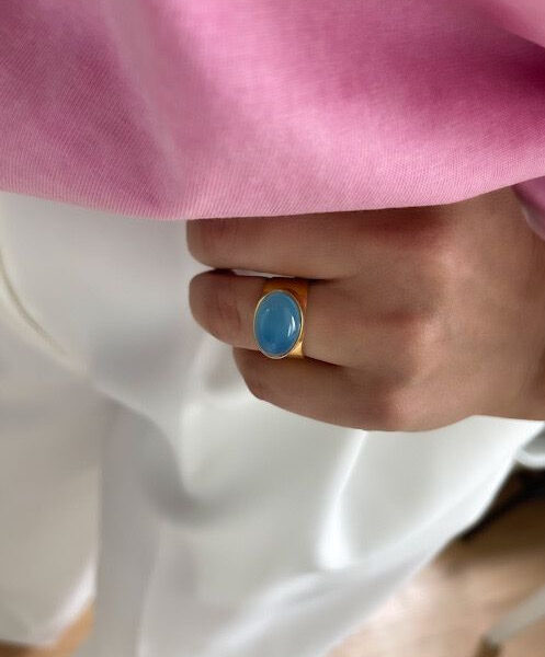 Szeroka obraczka z agatem blue SKY