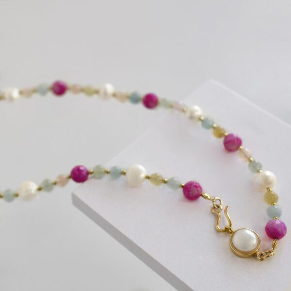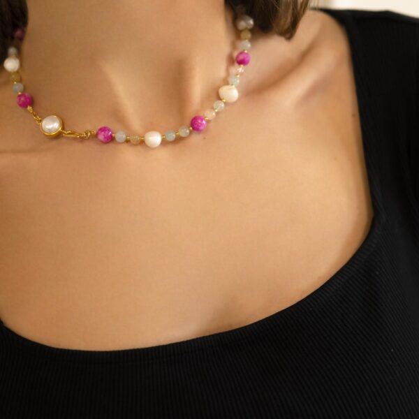 Choker na szyję z Kolorowych kamieni i pereł Blossom Peony