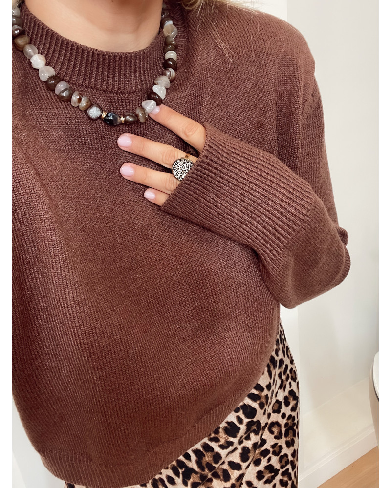 Agat od wieków uważany jest za kamień ugruntowania i wewnętrznej harmonii. Jego naturalne odcienie brązu symbolizują siłę natury, stabilność i spokój.