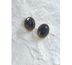 Srebrne Kolczyki Satynowane z Kwarcem Dymnym.