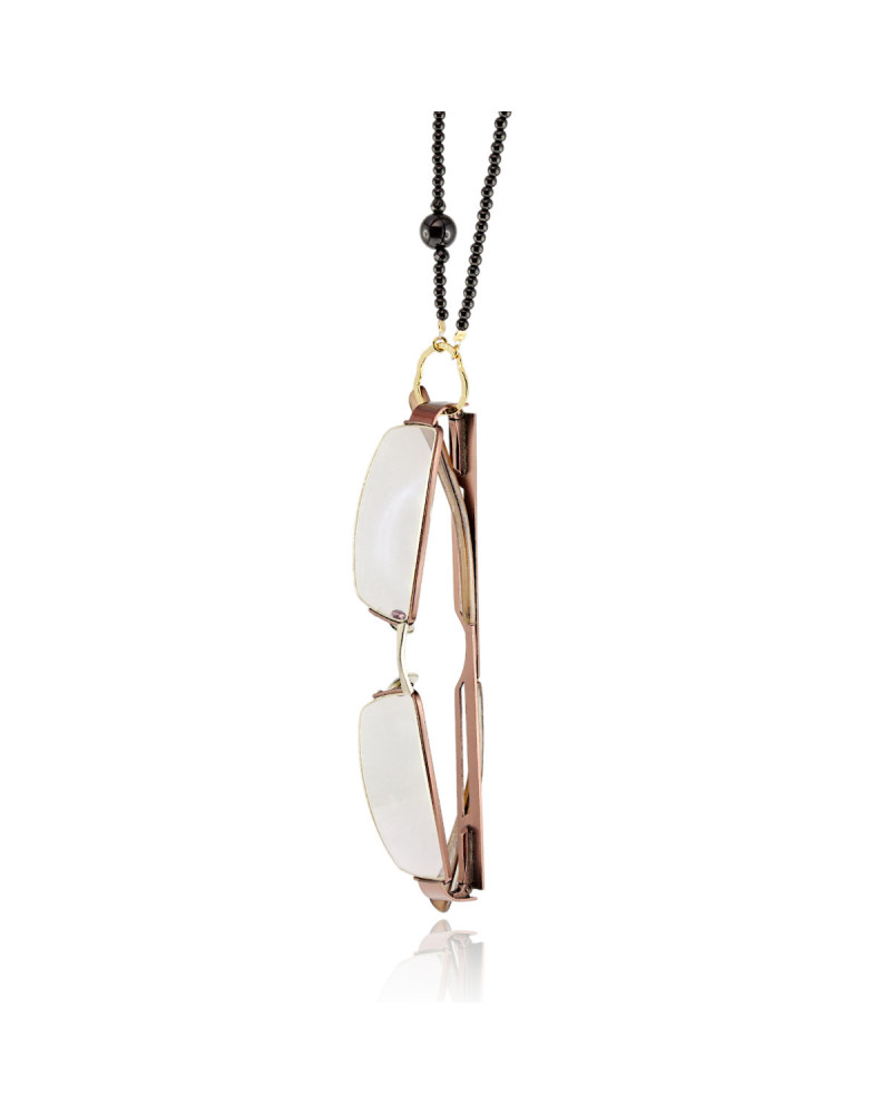 Centralnym elementem jest nieregularna, ręcznie młotkowana zawieszka, która pełni nie tylko funkcję ozdobną, ale również praktyczną umożliwia zawieszenie okularów. To subtelne połączenie biżuterii i codziennego rytuału, wpisujące się w filozofię kolekcji RITUAL.