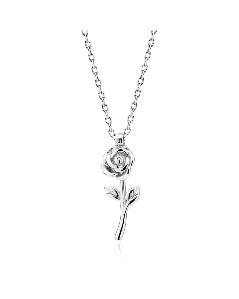 Delikatny naszyjnik na cienkim łańcuszku z zawieszką w kształcie róży. Subtelna forma sprawia, że biżuteria pięknie układa się na szyi i pasuje do codziennych oraz bardziej eleganckich stylizacji. Motyw róży nadaje całości kobiecy, ponadczasowy charakter.
