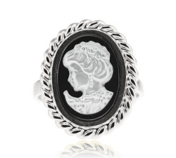 Ten projekt jest hołdem dla rzemiosła i ponadczasowej formy. Klasyczna kamea z kobiecym profilem została osadzona w starannie zaprojektowanej oprawie, która podkreśla jej szlachetny charakter i nadaje całości nowoczesną elegancję.