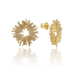 Te kolczyki powstały z myślą o blasku, który pojawia się dokładnie wtedy, kiedy go potrzebujesz. Ich promienista forma przypomina rozbłysk światła, moment energii, świeżości i kobiecej siły. To biżuteria, która rozświetla twarz i stylizację, nie dominując, lecz subtelnie podkreślając obecność.