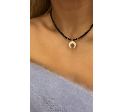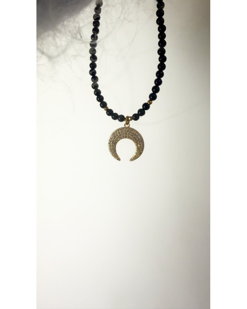 Naszyjnik z onyksem i srebrną zawieszka z cyrkoniami.