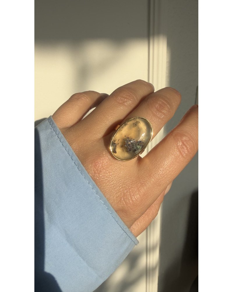 Każdy egzemplarz jest jedyny w swoim rodzaju, ponieważ układ minerałów w kamieniu nigdy się nie powtarza. To pierścionek o artystycznym charakterze, który przyciąga uwagę swoją naturalną kompozycją.